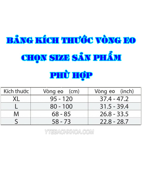 Sản phẩm được cung cấp với 4 kích cỡ S, M, L, XL phù hợp với kích thước vòng lưng khác nhau. Dựa theo bảng dưới đây sẽ giúp bạn chọn size phù hợp.