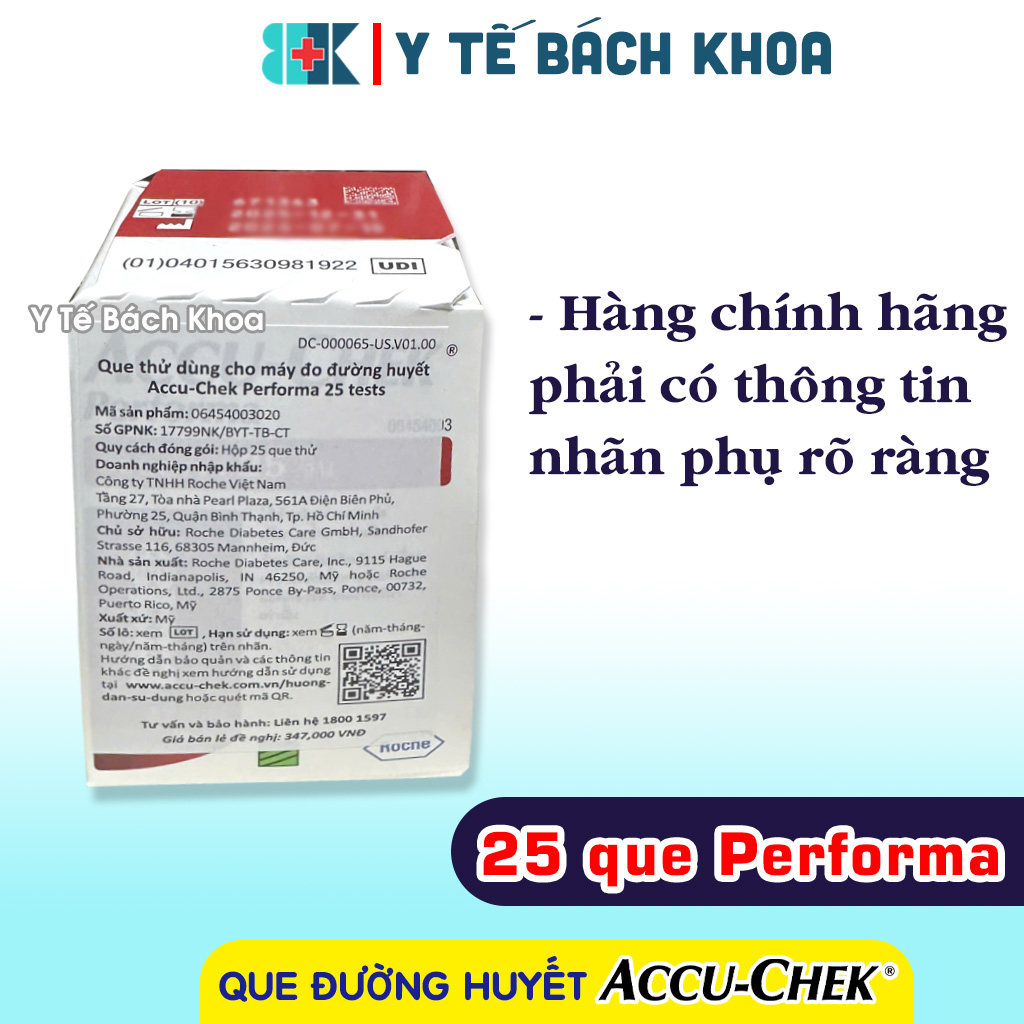 - HỘP 25 QUE ACCU-CHEK PERFORMA CÓ TEM CHÍNH HÃNG