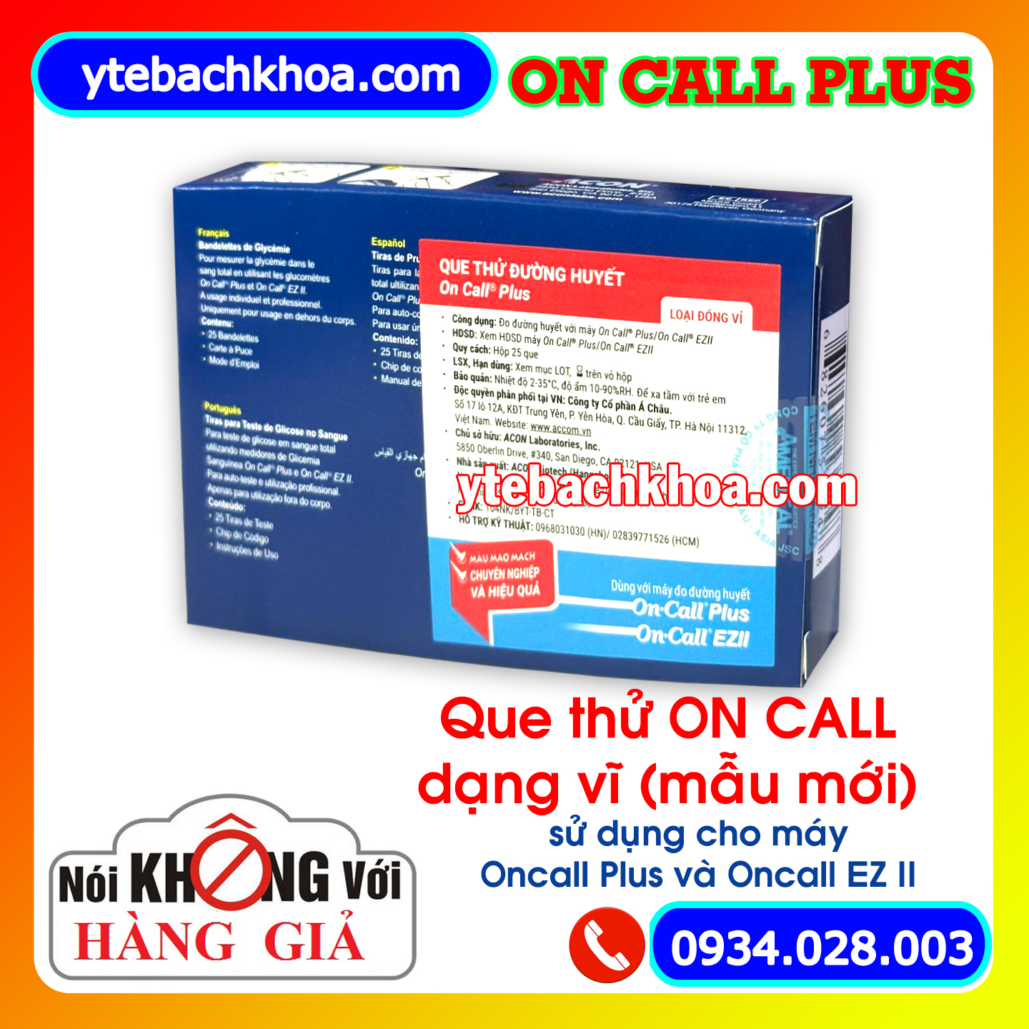- Que thử này chỉ sử dụng với máy đo đường huyết On Call Plus và dòng On Call EZ II.