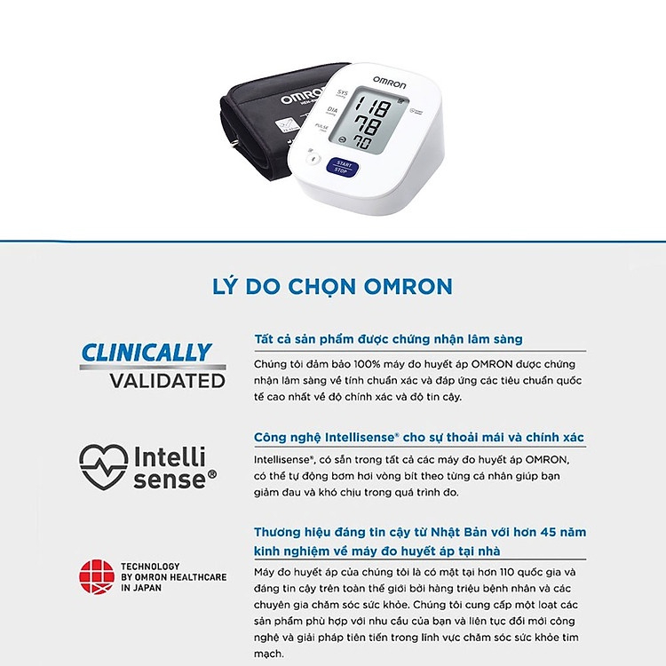 - Xuất xứ: LINH KIỆN CHÍNH SẢN XUẤT TẠI OMRON HEALTHCARE, KYOTO, NHẬT BẢN, LẮP RÁP TẠI NHÀ MÁY OMRON BÌNH DƯƠNG, VIỆT NAM