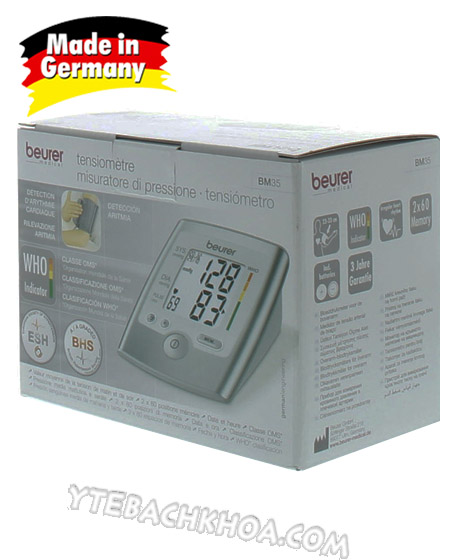 - Máy Đo Huyết Áp Bắp Tay Beurer BM 35 sẽ giúp bảo vệ sức khỏe tối ưu cho các thành viên trong gia đình bạn. Máy có chế độ tự động đo huyết áp, bộ nhớ dành cho 2 người, lưu trữ 120 kết quả cùng ngày, giờ đo, cho kết quả chính xác.