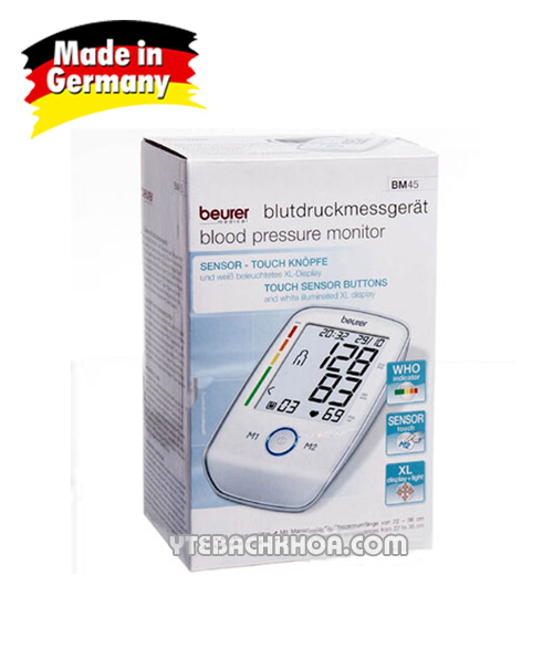 - Đo huyết áp thường xuyên, mọi nơi, mọi lúc với máy đo huyết áp bắp tay Beurer BM45 được sản xuất bằng công nghệ mới nhất với các nút cảm ứng, có đèn chiếu sáng và hình dáng gọn nhẹ, sử dụng dễ dàng, đơn giản trong gia đình, cho mọi lứa tuổi.