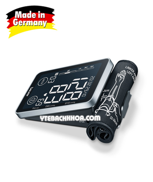 Các bệnh về huyết áp như hạ huyết áp, tăng huyết áp rất nguy hiểm và được coi là kẻ giết người thầm lặng - đây là một bệnh lý nguy hiểm dẫn tới nhiều biến chứng về tim mạch như: tai biến mạch máu não, nhồi máu cơ tim, bệnh động mạch vành.Và để ngăn ngừa những nguy cơ, biến chứng ấy thì ngoài chế độ ăn, giảm cân, tập luyện hợp lý bạn cần theo dõi huyết áp của thường xuyên hơn - Máy đo huyết áp bắp tay Beurer BM58 sẽ giúp bạn làm điềuđó dễ dàng và thuận tiện nhất.Máy đo huyết áp bắp tay Beurer BM58 có ưu điểm nổi bật sau:+ Chiến thắng ở hạng mục Best in Test tại cuộc thi German Technology & Red Dot Design.+ Có thể kết nối với máy tính và đưa ra kết quả phân tích hữu ích cho người dùng.+ Kết quả chính xác, dễ dàng thao thác. Màn hình hiển thị cực lớn (big size) , cỡ chữ lớn, rõ ràng+ Cảnh báo nhịp tim bất thường, cảnh báo huyết áp bất thường theo tiêu chuẩn tổ chức y tế thế giới