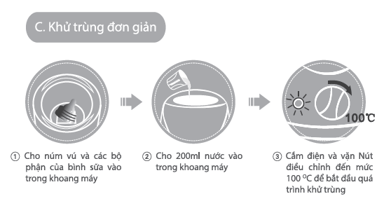 3. Khử trùng bình sữa, phụ kiện bình sữa,...: