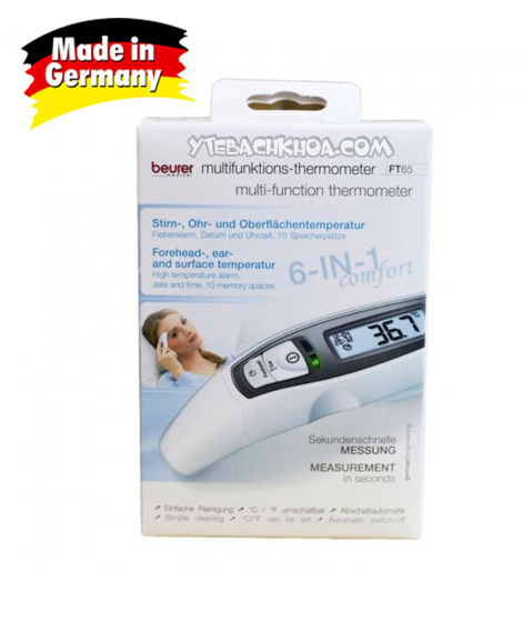 - Nhiệt Kế Đo Tai - Trán 6 Trong 1 Beurer FT65 là thiết bị y tế tin dùng của mọi nhà, là bước ban đầu kiểm tra thân nhiệt khi sốt, dự đoán mức độ sốt nặng hay nhẹ để có biện pháp xử lý kịp thời. Sản phẩm có thương hiệu Đức sử dụng công nghệ tiên tiến với tia hồng ngoại và cảm biến sensor nhanh nhạy đem đến sự an toàn tiện dụng cho mọi người.