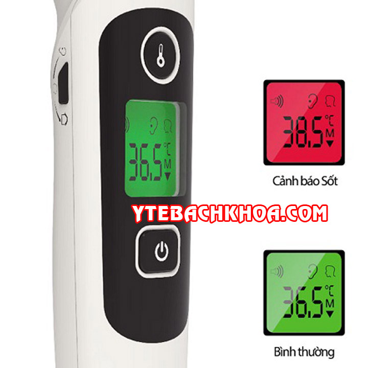 - Cảnh báo sốt bằng âm thanh và bằng đèn nền màu đỏ khi sốt;