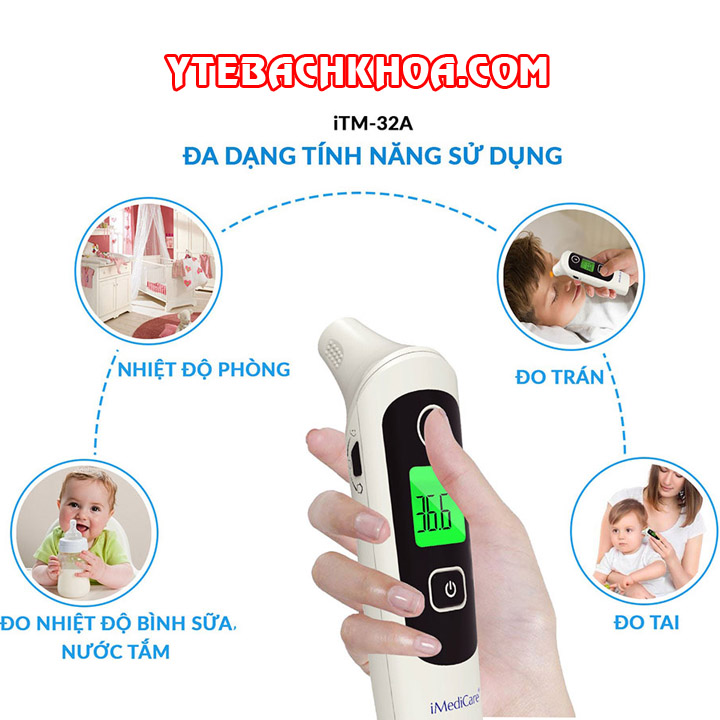 Đa dạng tính năng sử dụng của nhiệt kế điện tử hồng ngoại cao cấp iMediCare iTM 32A: đo trán – tai, đo nhiệt độ phòng, bình sữa, nước tắm,..