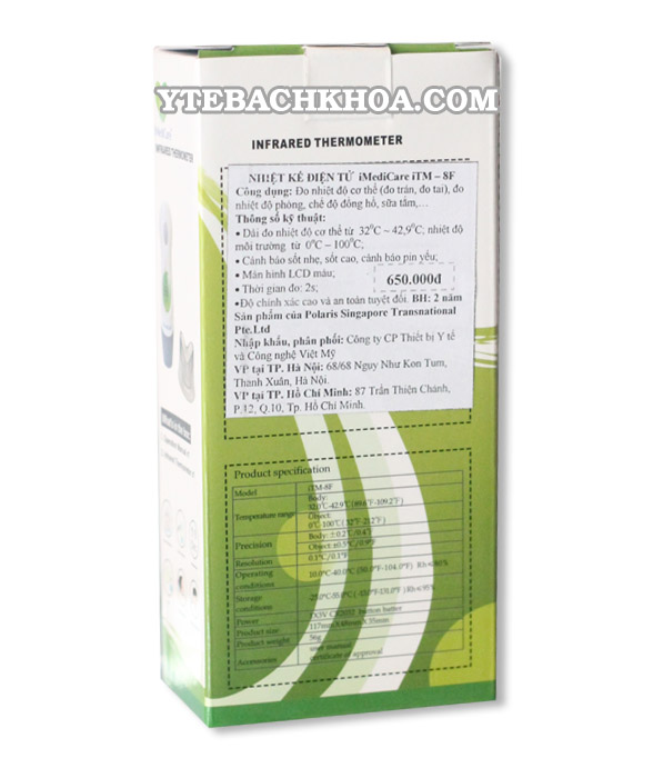 Thông số kỹ thuật của nhiệt kế hồng ngoại đa chức năng iMediCare iTM 8F: