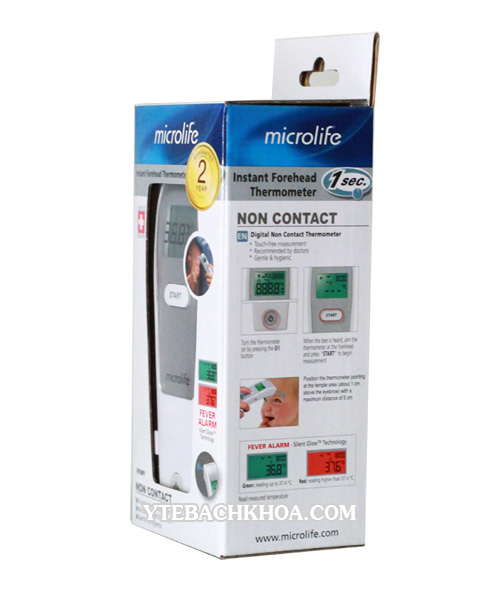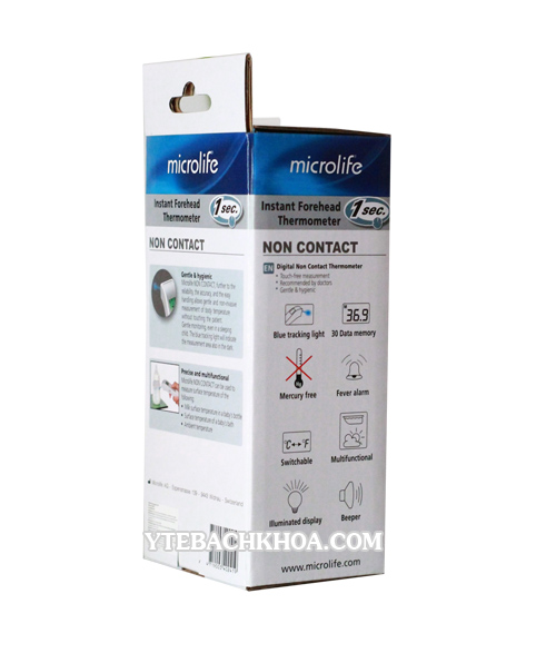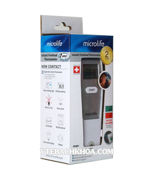 - Nhiệt kế hồng ngoại Microlife FR1MF1 đã được kiểm nghiệm lâm sàng tại Châu Âu và được các bác sỹ khuyên dùng . Chức năng cảnh báo sốt 10 tiếng bíp nhanh liên tục kèm theo màn hình chuyển sang màu đỏ khi nhiệt độ lên cao quá 37.5 độ C