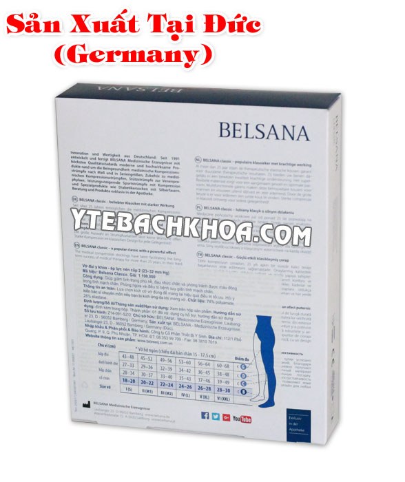 Vớ y khoa Belsana được sản xuất tại Đức, đạt các chứng chỉ chất lượng y tế nghiêm ngặt của Đức và châu Âu, chất liệu vải tốt, đường may sắc sảo cùng với giá cả hợp lí đã và đang là lựa chọn hàng đầu của người bị bệnh suy giãn tĩnh mạch chân. Sở hữu vớ y khoa Belsana, bạn không còn lo lắng nhiều về bệnh suy tĩnh mạch của mình nữa.